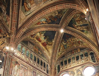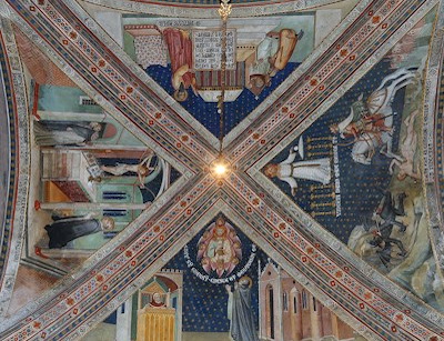 La volta è stata in parte decorata da Giacomo da Bologna con stelle d’oro su fondo azzurro. È suddivisa in otto vele, in cui sono rappresentate profezie e simboli eucaristici. Nelle lunette sotto le volte sono state raffigurate coppie di angeli e gli stemmi dell’Opera del Duomo.