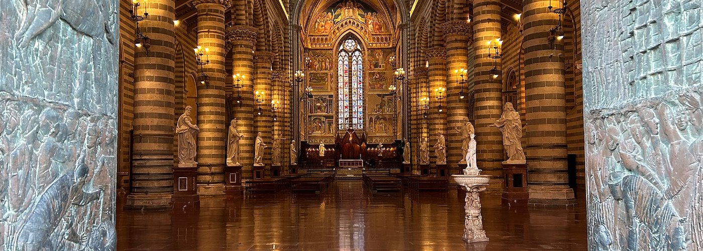 - Tra gli anni Cinquanta del Cinquecento e gli anni Venti del Settecento venne realizzato un ciclo scultoreo, rimosso dalla cattedrale, assieme agli altari laterali, alla fine dell’Ottocento, per riportare il Duomo allo stile delle origini. Per lunghi anni le statue vennero spostate al piano terra del Palazzo Soliano per essere poi chiuse in casse di legno collocate nei sotterranei del Duomo. Nel 2006 vennero esposte nella chiesa orvietana di Sant’Agostino, per poi ritornare, nel 2019, all’interno della Cattedrale collocate esattamente nel loro sito originario individuato tramite preziose foto di fine Ottocento.