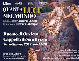L’Opera del Duomo, in stretta collaborazione con Unitre Orvieto e Scuola Comunale di Musica “Adriano Casasole”, presenta “Quanta luce nel mondo”: l’arte pianistica di un concertista di calibro internazionale come Riccardo Cambri si unisce alla qualità interpretativa di un protagonista del teatro quale è Giulio Scarpati, così da far risaltare il messaggio di Fede e Speranza di cui sono testimoni gli affreschi del Signorelli.