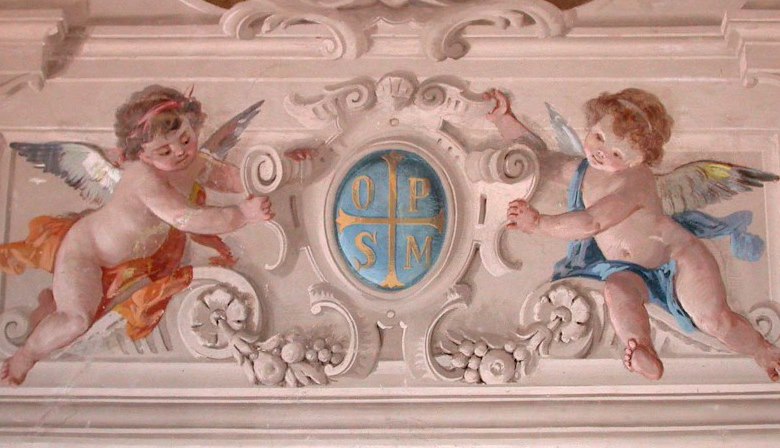 Lo stemma della Fabbrica dal 1421 assume la forma di una croce potenziata rossa accantonata dalle cifre gotiche OPSM (Opera Pia Sancte Marie) iscritta in un anello.